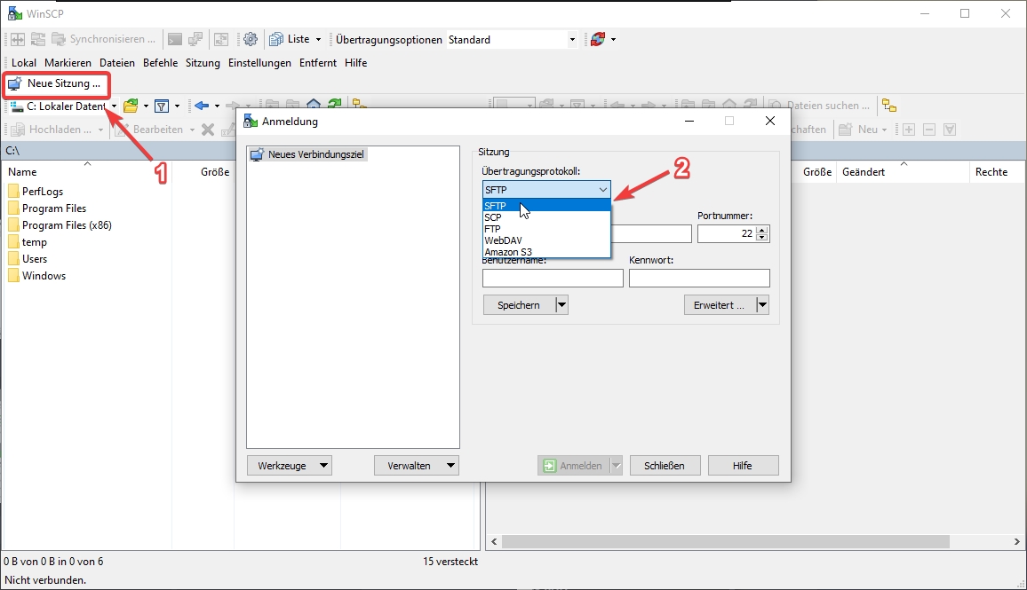 To connect via SFTP, you have to switch to SFTP in Winscp: