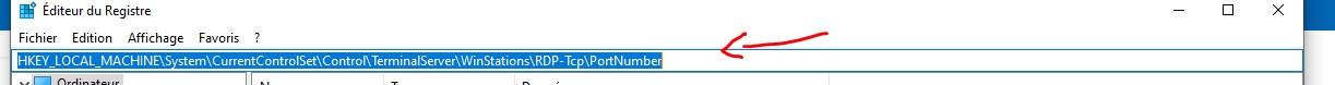 HKEY_LOCAL_MACHINE\System\CurrentControlSet\Control\TerminalServer\WinStations\RDP-Tcp\PortNumber
